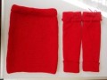 Strojově pletené, velmi pružné, návleky na nohy se sukýnkou červené barvy. Velikost 122: výška návleků 29cm, jde upravit nařasením, v horním lemu navlečena točená šňůrka, sukýnka: obvod pasu a boků až 64cm, délka 31cm, na boku malý rozparek, v pase vyměnitelná pruženka. Návleky jsou postupně rozšiřované. Doporučuji jemné praní, nebo v pračce program na vlnu, sušit volně položené.