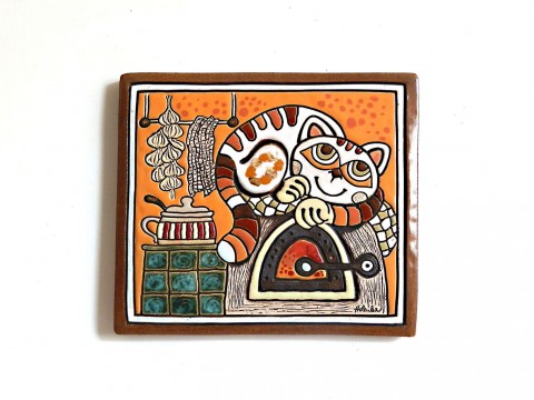 Obrázek je ručně zhotoven z keramické hmoty, ručně malován keramickými glazurami a vypálen v peci na teplotu 1200st. C.