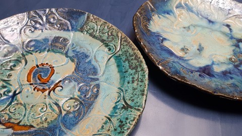 Velká extravagantní keramická mísa v modro tyrkysových tónech s červení a zlatavou ...