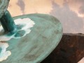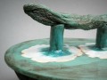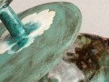 V dlani s láskou ručně modelovanou misku lze uzavřít jednoduchým víkem s aplikací připomínající dřevo. Jednoduché linie navozují pocit klidu a harmonie. Základní tyrkysový odstín engoby dozdobují efekty hnědé, bílé a tyrkysové glazury. Vše je patinované burelem.