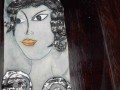 Keramický reliéfní kachel s portrétem exotické okaté ženy.