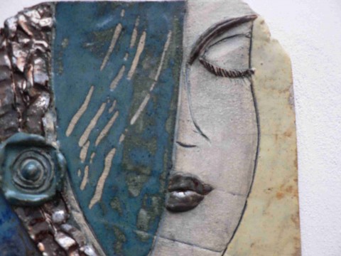 Keramická reliéfní kachle.