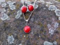 K tomu do sady naušnice, tzv. napichovátka, stejný červený howlit, plastové zarážky.