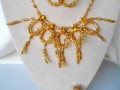 Na lanku navlečen rokajl se zlatým průtahem a broušené sklo.
