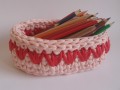 Oválný dekorativní košík je uháčkován ze špagátů,složením 90%bavlna,10% lycra.