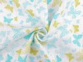 Bavlněná plenkovina s motivem motýlů je jemná, vzdušná a hebká na dotek. Motivy jsou jednostranné. Uvedená cena za 1 metr.