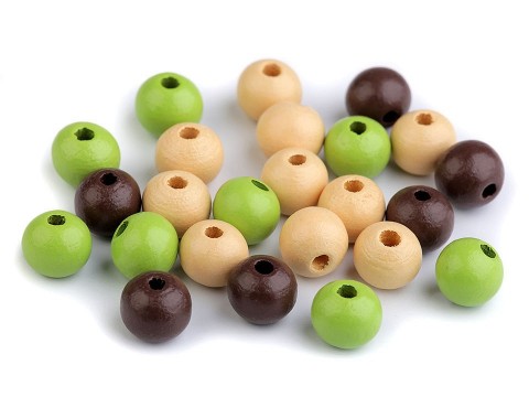 Dřevěné korálky mají průměr 10 mm. Průvlek korálku 2,2 mm. Uvedená cena je za mix 40 kusů.