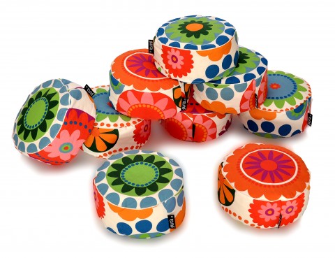 Malý sedací polštářek o průměru cca 30 cm a výšce cca 15 cm, plněný eps kuličkami (na přání lze i tentýž naplněný bio-špaldou, bio-pohankou).