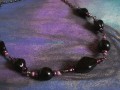 Ketlovaný náhrdelník z černých skl. korálků a barevného rokajlu a korálků fialové barvy. Doplněno biž. řetízkem gun metal.