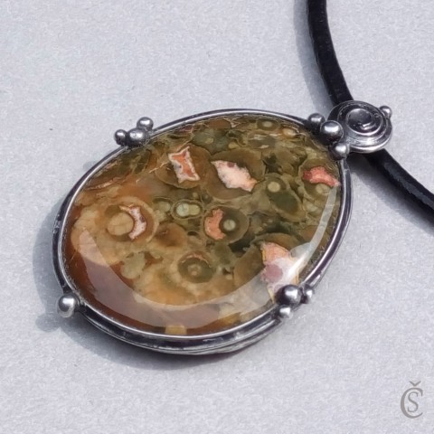 POPIS: Šperk jsem vytvořila z Ryolitu, nádherně zbarveného z obou stran.