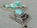 S dominantou přívěsku s vlepovaným kabošonem z tyrkenitu a ozdobeným řetízkovým střapcem