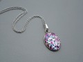 Oválný přívěsek s barevným gepardím vzorovaným skleněným kamínkem je umístěný na řetízku z nerezové oceli.