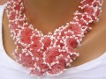 Náhrdelník je ušitý z růžového průhledného a bílého rokajlu, českého Preciosa, technikou korálkové krajky. Střed náhrdelníku je ušitý stupňovitě.