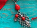 Dlouhý a výrazný přívěsek s červenou slzičkou a starostříbrným filigránovým kosočtvercem. Délka přívěsku 7,5 cm, délka řetízku 68 cm, karabinka. Řetízek můžu na přání zkrátit. Komponenty v barvě stříbra, běžný kov.