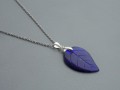 Modrý skleněný lístek je umístěn na řetízku z nerezové oceli.