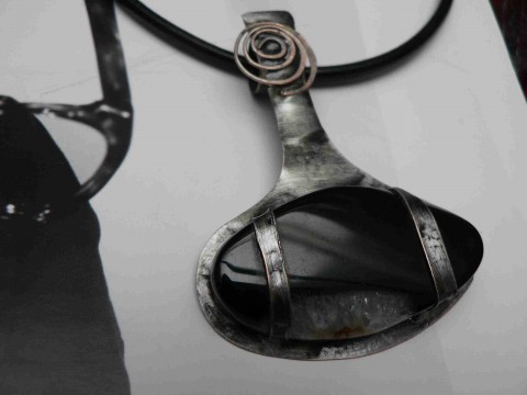 Cínovaný náhrdelník z pěkného kousku černo šedo bílého achátu.ěš