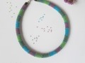 Náhrdelník vytvořený velmi pracnou, časově náročnou technikou háčkování s korálky. Ručně, korálek po korálku, uháčkováno z jemného kordonetu a skleněných českých korálků Precioza. Pevná ale přitom lehce ohebná dutinka je doplněna bižuterními komponety z obecného kovu.