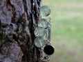 Náhrdelník tvoří šest výběrových kuliček prehnitu v zeleno-průzračné barvě doplněné o stříbrné mezidíly a to o úzké tyčinky a kolečka vyplněné černým motivem posypaným zlatým prachem