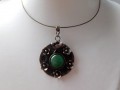 Tento měděný přívěšek má průměr 5 cm, uvnitř je zelený avanturin o průměru 20 mm.Květy seřazené okolo kamene, ptáček.....
