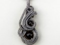 Přívěsek s kouřově hnědými korálky záhnědy, vytvořený technikou wire wrapping z drátků z nerezové oceli. Přívěsek je velký 4,5 x 2 cm a je zavěšený na nerezovém řetízku, dlouhém 46 cm. Vhodné pro alergiky. Do soupravy lze doplnit náušnicemi Tessa.