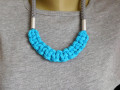 Pletený náhrdelník z šedého lana, tyrkysového a trubiček z eloxovaného hliníku..... .....