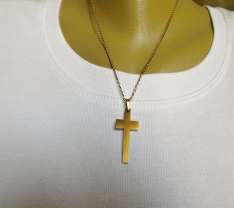Jednoduchý jemný nerezový řetízek s přívěškem - křížek- pozlacená verze.....