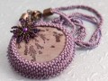 Náhrdelník v růžovo-fialových barvách vyrobený technikou šitého šperku.