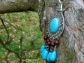 Pod přívěskem jsou zavěšeny kapky, také z tyrkenitu, spolu s dřevěnými korálky.
