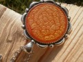 velikost kolečka cca 4 cm i se zdobeným okrajem, komponenty v barvě stříbra, zavěšeno na hrubším řetízku, délka 52 cm, na přání můžu zkrátit.