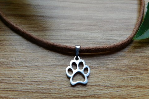 Náhrdelnk - nerez, kůže, tlapka
