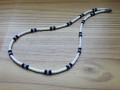 Náhrdelník je vyrobený z malinkých bilých skleněných korálků a černých a modrých korálků- preciosa, rokajl