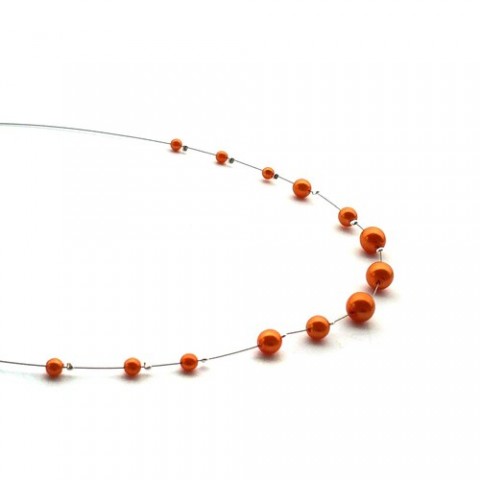 Jednoduchý náhrdelník z oranžových voskovaných perliček, které jsou od sebe rozděleny krátkými rozestupy. Perličky jsou navlečeny na bižuterním lanku stříbrné barvy. Velikost perliček je od 4 po 8 mm, přičemž největší jsou ve středové části.