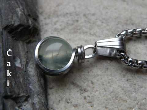 Přívěšek z chirurgické oceli, zdobí je krásný prehnit průměr je 10 mm .
