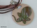 Barva přívěsku: pleťový až béžový podklad, motiv z olivově zelené až khaki a hnědé, zadní strana jednobarevná mocca hnědá