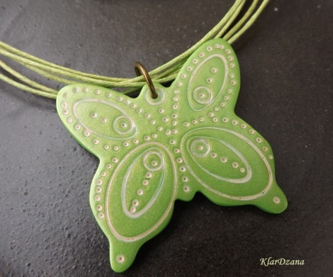 Přívěsek z polymeru na světlezelených voskovaných šňůrkách