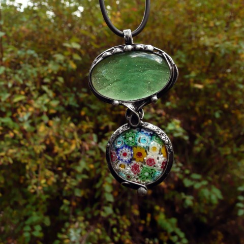 Přívěsek ze stříbrocínu a skla ZAHRADA RADOSTI – fusing, millefiori