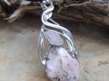 Cínovaný náhrdelník s rodonitem a surovým růženínem.