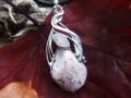 Z bezolovnatého cínu, bez patiny, leštěný a ošetřený antioxidantem. Zavěšený je na černé kůži o délce 45 cm. Zapínání na nerez karabinu a prodlužovací řetízek.