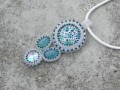 náhrdelník tvořený ze skleněného kabošonu s motivem, spékaných sklíček a rivolky