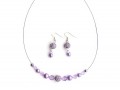 Jednoduchý náhrdelník ze světle fialových voskovaných perliček a broušených skleněných korálků, které jsou doplněny drobnými stříbrnými skleněnými korálky. Všechny korálky jsou navléknuty na bižuterním lanku fialové barvy.