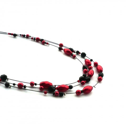 Náhrdelník je tvořený z tří řad různě rozmístěných vínově červených voskovaných perliček a černých skleněných korálků více velikostí i tvarů. Všechny korálky jsou navlečeny na bižuterním lanku černé barvy.