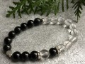 Náramek z kuliček černého onyxu a křišťálu (8 mm), šatonových rondelek a kuliček z nerez oceli. Náramek je pružný - cca 18 cm