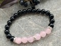 Náramek z kuliček černého lesklého onyxu a růženínu (8 mm) a čirých štrasových rondelek. Náramek je pružný - vhodný na zápěstí cca 16 - 17 cm