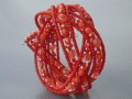 Náramek je tvořený z propletených řad červených skleněných korálků různých velikostí i druhů (broušené korálky, skleněné korálky, drobounké skleněné korálky).