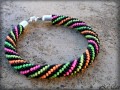* náramek háčkovaný z černého rokajlu a matného neonového rokajlu - růžová, žlutá, zelená, oranžová