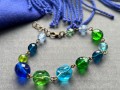 Ketlovaný náramek z broušených skleněných korálků. Délka 19 cm, zapínání na karabinku, prodlužující řetízek (max 22 cm), délku můžu na přání upravit