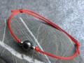 Kabbalah náramek ze saténové šňůrky s kuličkou hematitu a s korálky z nerez oceli. Univerzální velikost - dá se nastavit díky posuvným uzlíkům. Vhodný na dámské zápěstí.