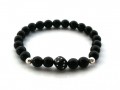 Černé skleněné korálky jsou doplněné o kovové korálky stříbrné barvy a uprostřed náramku je korálek v podobě hrací kostky.