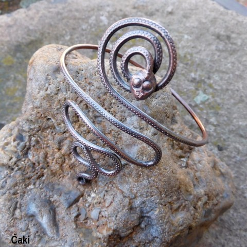 Měděný nápažník ve tvaru hada, možno přizpůsobit na jakoukoliv velikost paže, dá se roztáhnout nebo zmenšit. Tentokrát z trošku silnějšího drátu - je pevnější.