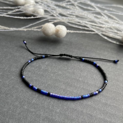 Náramek z luxusních drobných japonských skleněných korálků Miyuki na černé syntetické šňůrce. Délka korálkové části 15 cm.